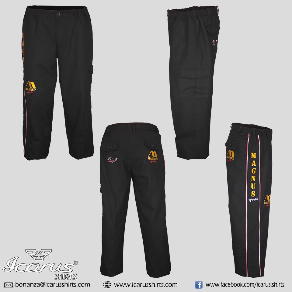 We are using 2 kinds of fabrics for pants and shorts One is called BRUSHTWILL. I use that And another one is called RIPSTOP Ripstop is lighter than the brushtwill, quality wise they are both the same... Fabrics don't have stretch... See attach swatches of RIPSTOP, it has checkered lines. They both don't shrink and are not "wear and tear" if wash properly. All logos are embroidered to make the pants more classy THE PRICE WILL DEPEND ON THE DESIGN